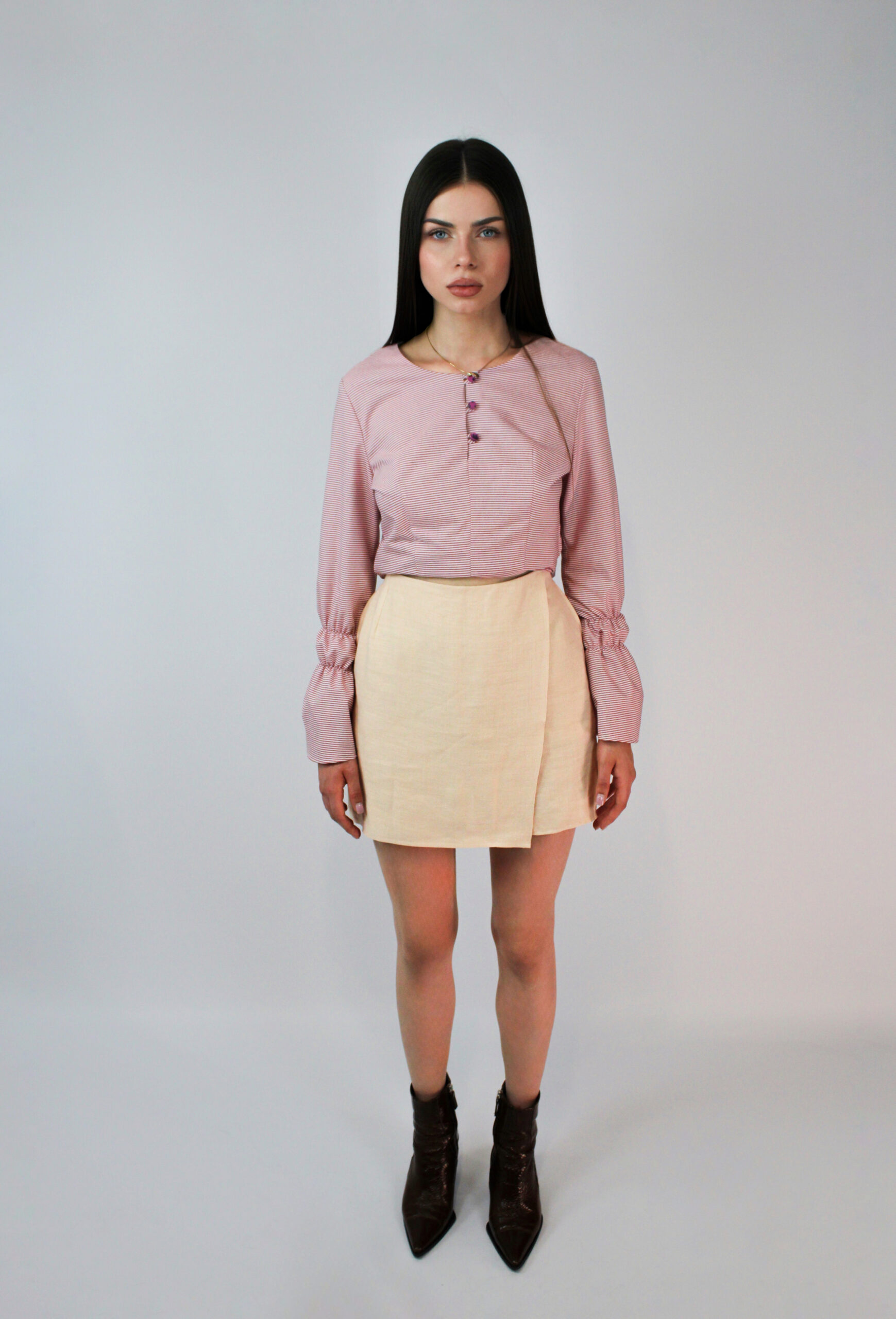 Lucrata manual de artizani romani iscusiti, aceasta fusta-pantalon este realizata cu atentie din in 100% sustenabil si finisata intr-o nuanta delicata de roz prafuit. Conceputa pentru a oferi confort in zilele toride de vara, materialul sau respirabil si silueta relaxata o fac o alegere ideala pentru sezonul cald.